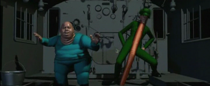 The scene starts when Hero Boy lands in the tender of locomotive and finds Hero Girl driving the train. Hero Girl lets Hero Boy blow the whistle, but the moment he does so, the engine starts making hissing noises. Hero Girl tries to fix it by turning two controls, which she claims Steamer told her to do, though nothing happens.