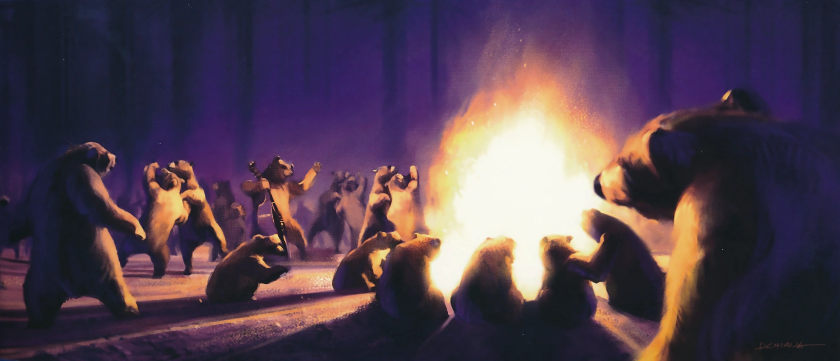 Early concept art for the film shows a sleuth of bears partying around a campfire in a forest celebrating Christmas.[3] It can be assumed this would have taken place during the ticket journey, but it never made it into the final film.