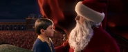 At the North Pole Square, the children, Conductor, and elves wait for Santa's arrival. When he arrives, the elves stack on each other, preventing Hero Boy from seeing him. When the reindeer cheer, one of their silver bells comes loose and lands in front of Hero Boy. He picks it up and, after telling himself, "I believe," rings it and hears its sound. Santa overhears and Hero Boy gives the bell to him, saying he believes it is his. After that, he talks to the children, telling Know-It-All to be patient waiting for the announcement and show some humility, then congratulating Hero Girl for her confidence and Christmas spirit and Billy for making new friends.