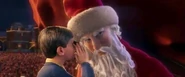 Later, he finds the silver bell in his sleigh and puts it in a present box (with the same design as Billy's present) with a note advising Hero Boy to have the hole in his bathrobe’s right pocket fixed. He delivers Billy's present sometime before Billy is dropped off at his house, but does not arrive at Hero Boy's house until after Hero Boy.